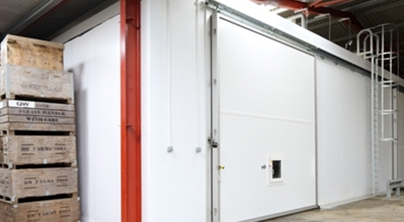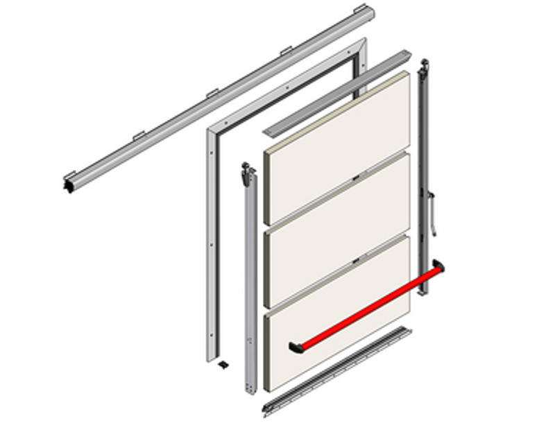Kit for CA door. Totally made-to-measure, EXCLUDING door leaf, suitable for sizes using 100mm sandwich panels. Finished all round with anodized aluminium profiles, thermal bridge-free. Equipped with an aluminium drop/lift rail system.