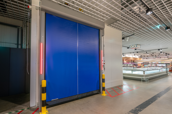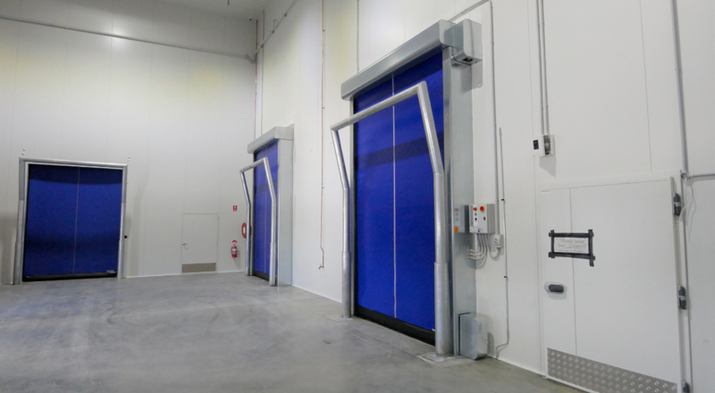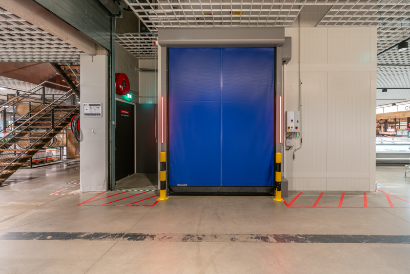 Cold storage facilities require doors that maintain stable temperatures and reduce energy loss. The DynamicRoll® Frigo 2 high-speed roll-up door is designed to prevent ice formation while optimizing energy efficiency.