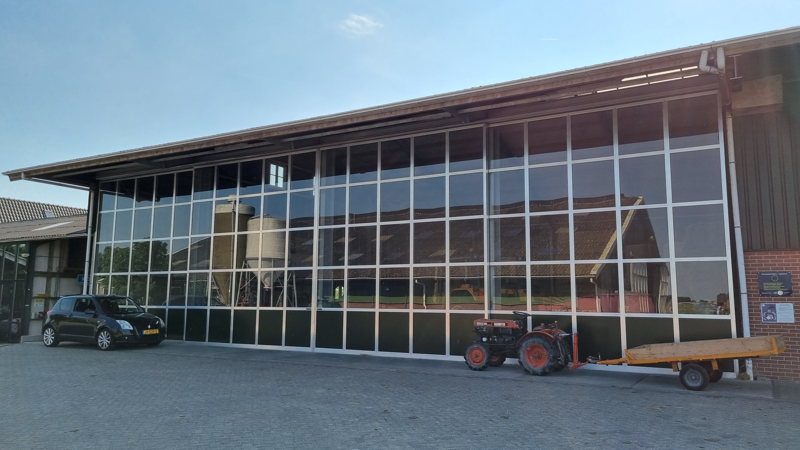 Zorgboerderij de Mijzenhoeve uit Avenhorn (NH). Op deze foto is hun meest recente aanwinst te zien: een vierdelige SPG-schuifdeurwand van 20 meter breed, en 5,5 meter hoog.