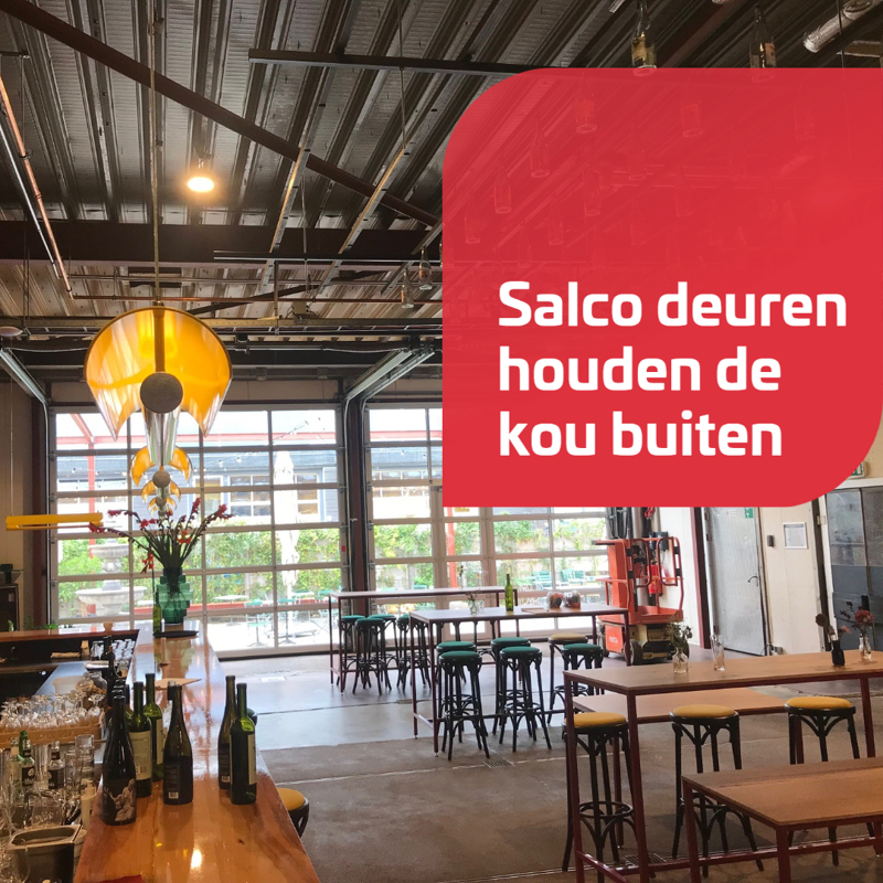 Voor het proeflokaal en het restaurant gedeelte mocht Salco vier stuks geheel beglaasde overheaddeuren leveren, om in de koude maanden het terras-gevoel naar binnen te halen.