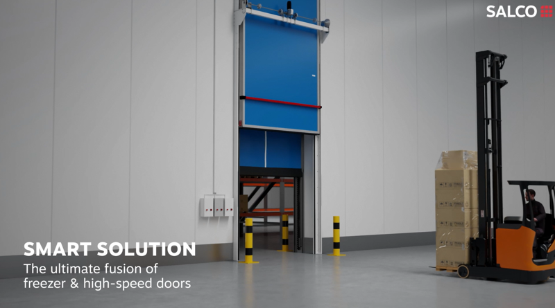 De Smart Solution integreert snelloop- en vriesceldeuren om energieverliezen te beperken. De snelloopdeur sluit automatisch kort na het passeren van verkeer. De sluitvertraging is aanpasbaar aan specifieke klantbehoeften. De vriesdeur sluit na inactiviteit en schakelt de blower en verwarming uit om energie te besparen.