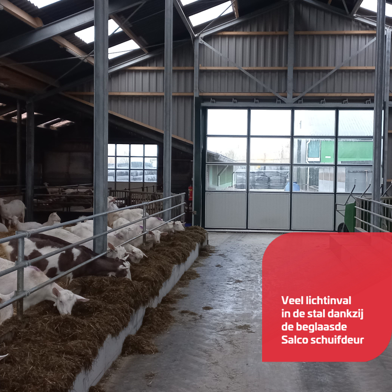 Niet alleen de familie Walhout uit Arnemuiden is erg blij met de nieuw geplaatste Salco schuifdeuren, ook hun geiten hebben het zichtbaar naar hun zin in het nieuwe onderkomen. Ook vanaf buiten een mooi aanzicht dankzij de gepoedercoate uitvoering.